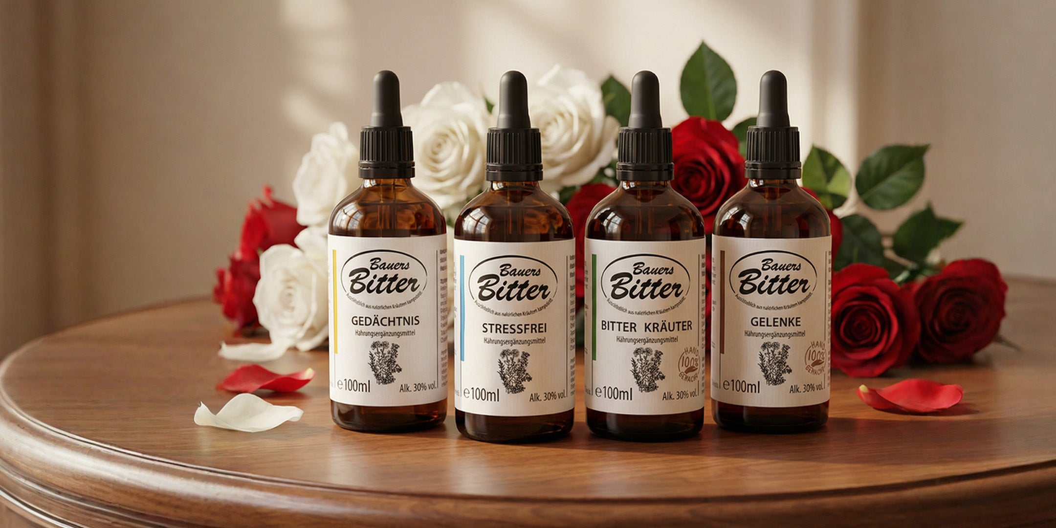 Welcome to Bauers Bitter, your expert for premium bitter drops! Quality is our top priority. Our bitter drops are made according to traditional recipes to offer you an incomparable taste experience. Whether to support your digestion or simply as a treat, Bauers Bitter is your reliable partner when it comes to high-quality bitter drops. Discover the variety of our products and be convinced by their effectiveness and distinctive aroma.